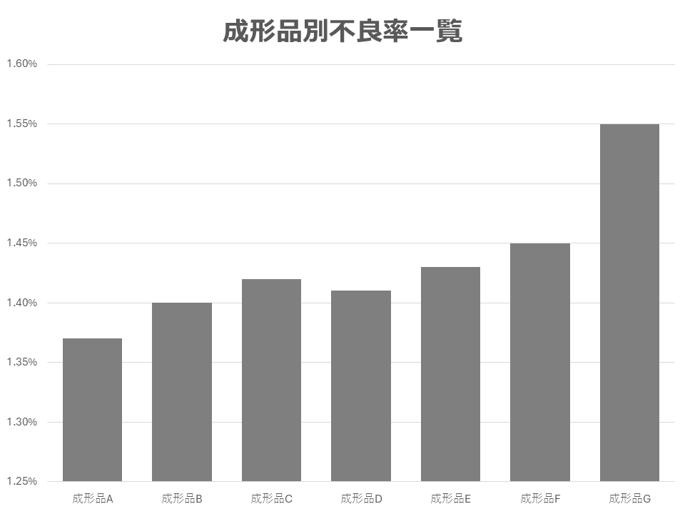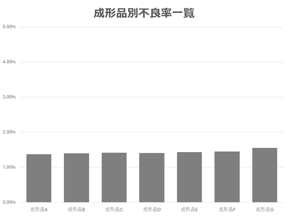 上の2つのは成形品別不良率をグラフにしたものですが、データは全く同じデータで作成してます。